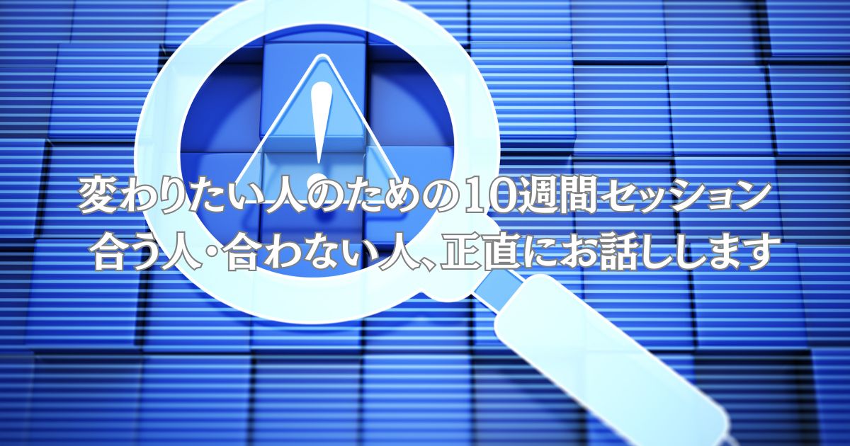 「変わりたいけど、なかなか変われない」——そんな方のための10週間セッション。合う人・合わない人を率直にお伝えします。無理なく、あなたのタイミングで一歩を踏み出すために。 -