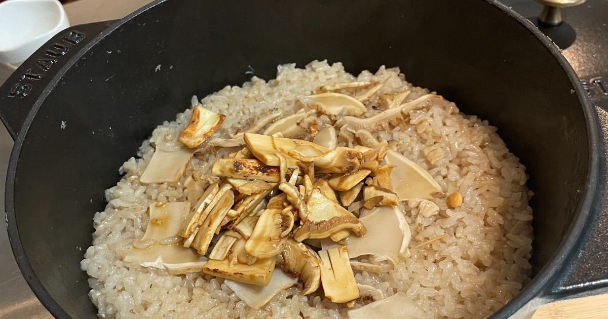 今回は、松茸ご飯、大根と豆腐のステーキ、きのこの汁などを作り、みんなで食しました。